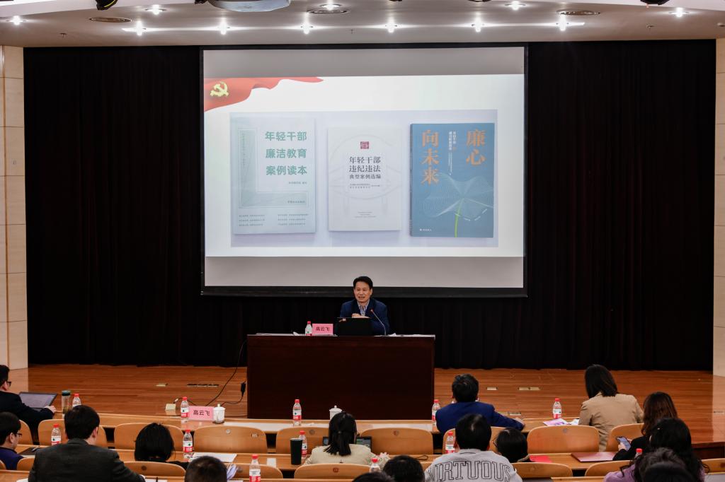 高云飞以“清风作伴 与廉同行”为主题,作干部廉政教育专题党课。他深入讲解了新时代推进全面从严治党取得的历史性成就和反腐败斗争的新形势,通报了近年来发生的违法违纪典型案例,深度剖析了涉案干部思想根源,教育与会干部要自觉以反面典型事例为镜鉴,从中汲取教训,引以为戒,不断提升政治素养和道德修养,做到清风作伴、与廉同行,带头扣紧扣实人生的每一粒扣子。