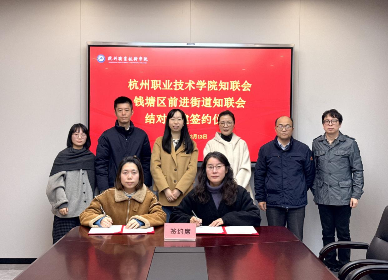 12月13日上午,钱塘区前进街道党外知识分子联谊会来访我校,并与校党外知识分子联谊会签署共建协议。前进街道宣统条线负责人李亚、前进街道知联会会长黄洁莹、校知联会会长黄璐、校党委统战部副部长贝锐等参加会议。