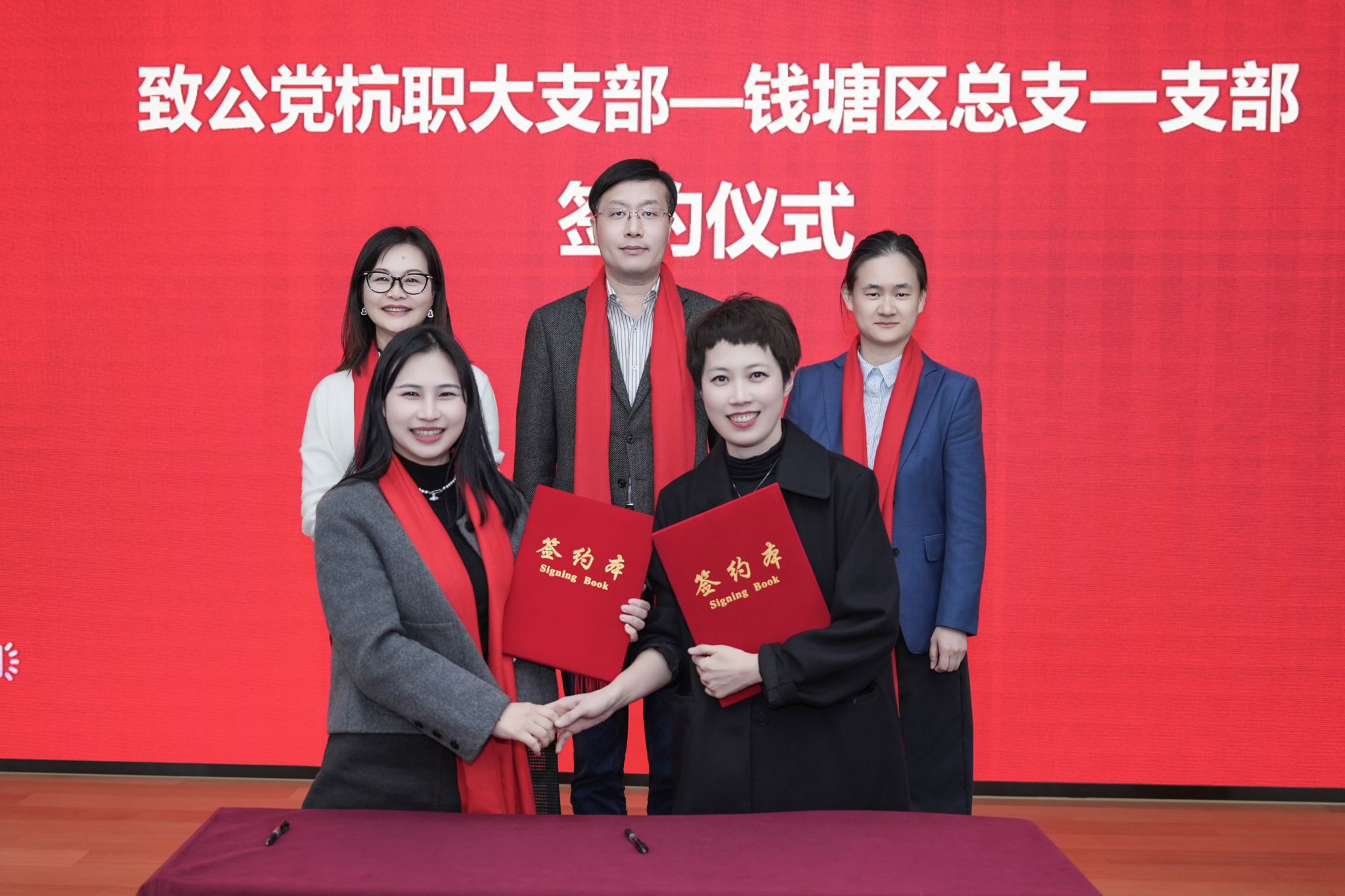 1月14日下午,致公党杭职大支部与致公党钱塘区总支一支部友好结对签约仪式暨留学生传统文化迎新活动在金砖国家特殊经济区中国合作中心成功举行。杭州职业技术大学党委副书记赖明诚,致公党杭州市委会副主委、杭州市投资促进局副局长蔡善强,钱塘新区党工委委员、管委会副主任,区委常委,区政府党组成员、副区长徐进,致公党杭州市委会委员、钱塘区总支主委,钱塘区政协副主席杨帆,钱塘区委统战部常务副部长、区侨联主席戎婷蓉等出席活动。致公党杭职大支部及致公党钱塘区总支一支部主委、党员代表等共同参与了本次活动,现场还特别邀请了钱塘区俄罗斯留学生代表出席,中外嘉宾欢聚一堂,共叙友谊,喜迎新年。本次活动由致公党杭职大支部和致公党钱塘区总支联合主办。