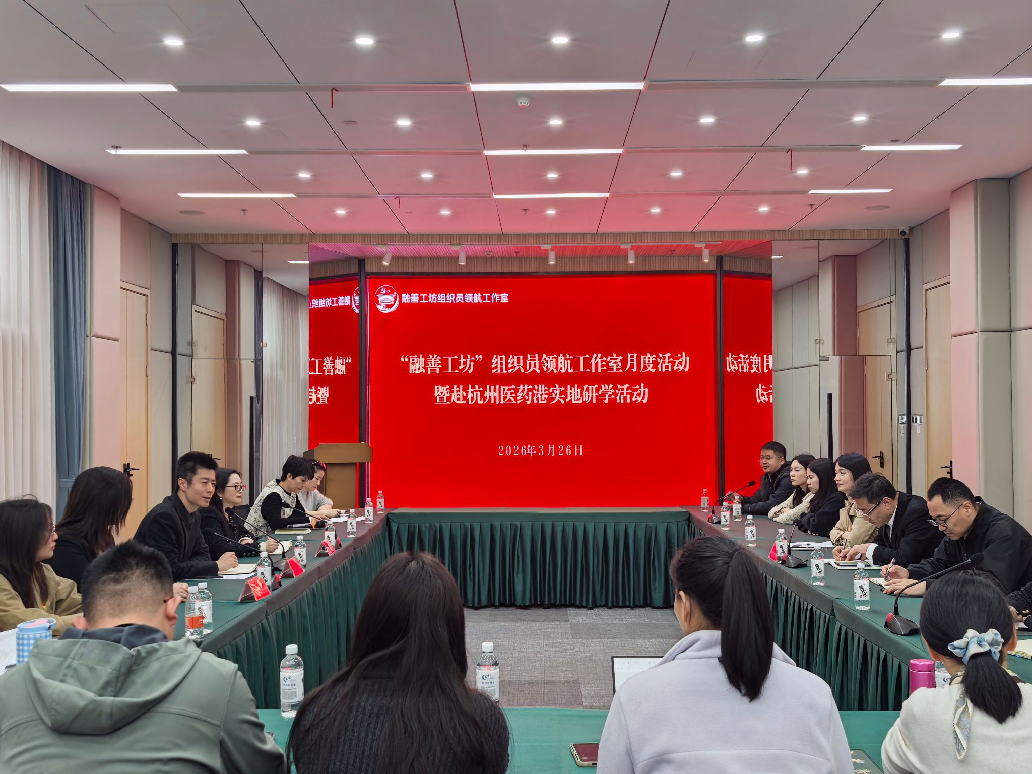 实地观摩后,杭州医药港党工委与领航工作室团队召开了党建联建与产教融合洽谈会。双方各自工作实际与资源优势,聚焦党员教育培训、企业员工赋能、民生服务项目等重点内容深入交流,共同谋划“组织共建、党员共育、资源共享、发展共促、服务共办、成果共享”的合作路径,计划以清单化管理、项目化推进为抓手,逐项推动合作事项落地见效,以高质量党建引领产教融合协同发展。